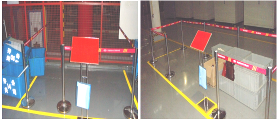 各車間用黃色反光膜將紅牌區域定位,每個紅牌區標識牌上懸掛紅牌區物品記錄表,定期對紅牌區域內物品進行整理。