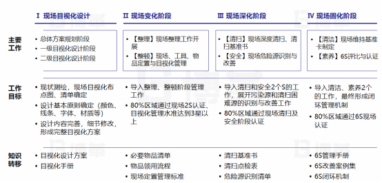 接到調(diào)研信息的時(shí)候正值國(guó)慶前兩天,接咨詢調(diào)研服務(wù)到信息的第二天博革咨詢調(diào)研團(tuán)隊(duì)就開赴現(xiàn)場(chǎng),展開為期三天的調(diào)研服務(wù),同時(shí)為客戶制訂了精益生產(chǎn)咨詢方案,本方案分為三個(gè)階段四大模塊,三大階段分別是:變化階段、深化階段、固化階段,四大模塊分別是:6S目視化管理、生產(chǎn)布局優(yōu)化、質(zhì)量管理提升、生產(chǎn)管理提升。