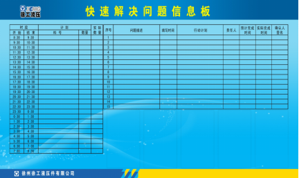7)快速響應(yīng)機(jī)制:通過車間現(xiàn)場(chǎng)快速響應(yīng)流程與生產(chǎn)責(zé)任會(huì)議相結(jié)合,建立“快速解決問題信息板”,快速解決生產(chǎn)問題。