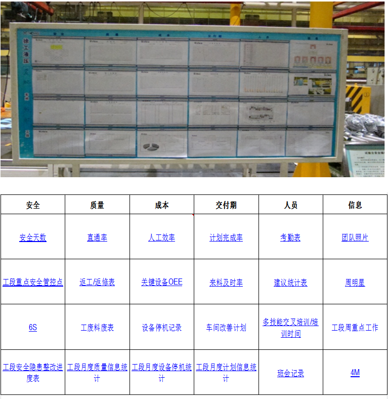 9)設(shè)置PQCDSM6個(gè)唯獨(dú)業(yè)績(jī)展板,實(shí)現(xiàn)可視化管理。