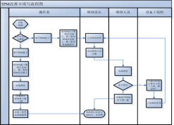 ③推進(jìn)基礎(chǔ)知識(shí)培訓(xùn)、全員TPM培訓(xùn)、自主保全1-3步培訓(xùn)、OEE培訓(xùn)、設(shè)備潤(rùn)滑、緊固培訓(xùn)等一系列TPM培訓(xùn)課程。并實(shí)施車間現(xiàn)場(chǎng)保全、現(xiàn)場(chǎng)6源排查、現(xiàn)場(chǎng)設(shè)備清掃、問題發(fā)現(xiàn)并分析解決、建立設(shè)備紅卡,設(shè)備點(diǎn)檢表,TPM紅黃藍(lán)卡,TPM改善流程圖,通過魚骨圖、A3報(bào)告分析改善設(shè)備問題。
