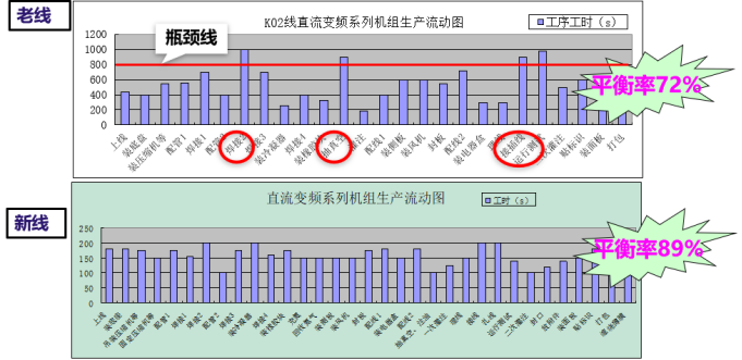 生產(chǎn)線的升級(jí)解決了孤島式批量生產(chǎn)的方式,實(shí)現(xiàn)了一線流生產(chǎn)模式,通過按節(jié)拍生產(chǎn)、連續(xù)流生產(chǎn)、培養(yǎng)多能工、使用自働化工裝等方式,逐步實(shí)現(xiàn)對(duì)原有生產(chǎn)線平衡調(diào)整。以確保最終實(shí)現(xiàn)預(yù)期目標(biāo)。