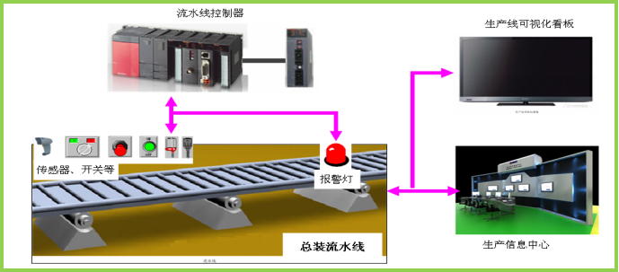 拉動(dòng)式生產(chǎn),生產(chǎn)線進(jìn)度實(shí)時(shí)反饋給配送區(qū),技術(shù)形式:生產(chǎn)看板和物料按燈系統(tǒng);