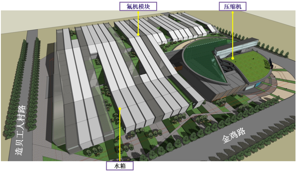總圖設(shè)計(jì):形成氟機(jī),水箱,壓縮機(jī)專業(yè)化生產(chǎn)基地