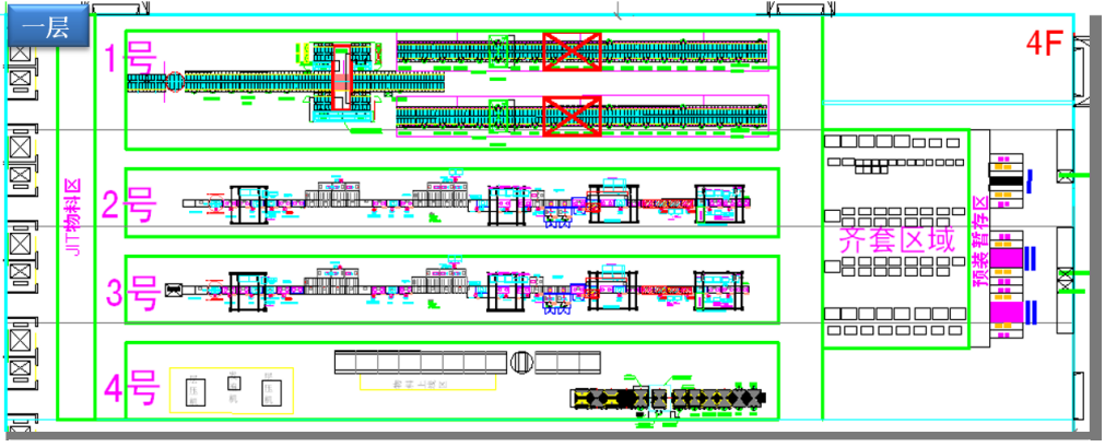 (1)一層線體設(shè)計(jì)布局圖