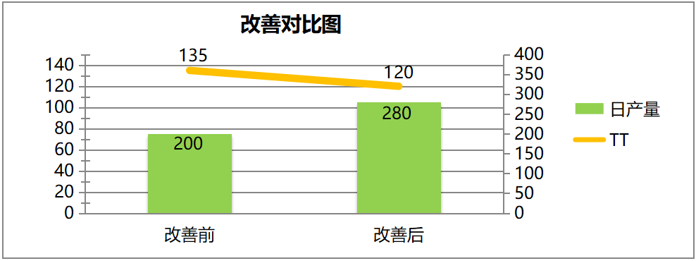 ? 總裝產(chǎn)能提升后標準時間(TT)為120S,生產(chǎn)效率提升16.6%