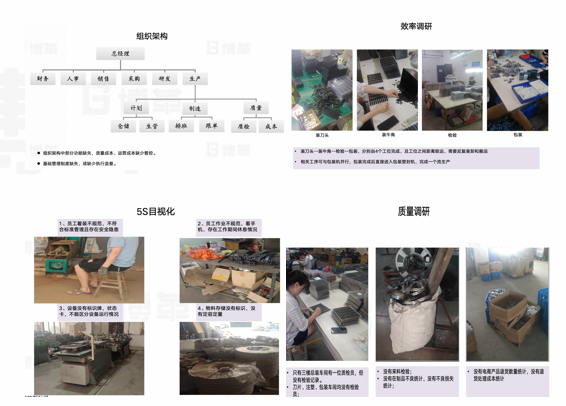 上海博革咨詢從2025年7月入場(chǎng)提供精益布局咨詢服務(wù),從產(chǎn)能需求入手,結(jié)合目視化及參觀需求,開(kāi)展了工藝流程分析、設(shè)備稼動(dòng)率分析、參觀路線設(shè)計(jì)、產(chǎn)品PQ分析、全自動(dòng)生產(chǎn)線規(guī)劃、特殊設(shè)備工藝需求及安環(huán)分析、物流路線、電梯負(fù)荷、水電氣路線及橋架搭建設(shè)計(jì)等服務(wù)項(xiàng)目。并對(duì)工廠組織架構(gòu)、基礎(chǔ)6S目視化管理、效率、品質(zhì)、成本管理等多維度管理內(nèi)容提出了優(yōu)化改善建議。