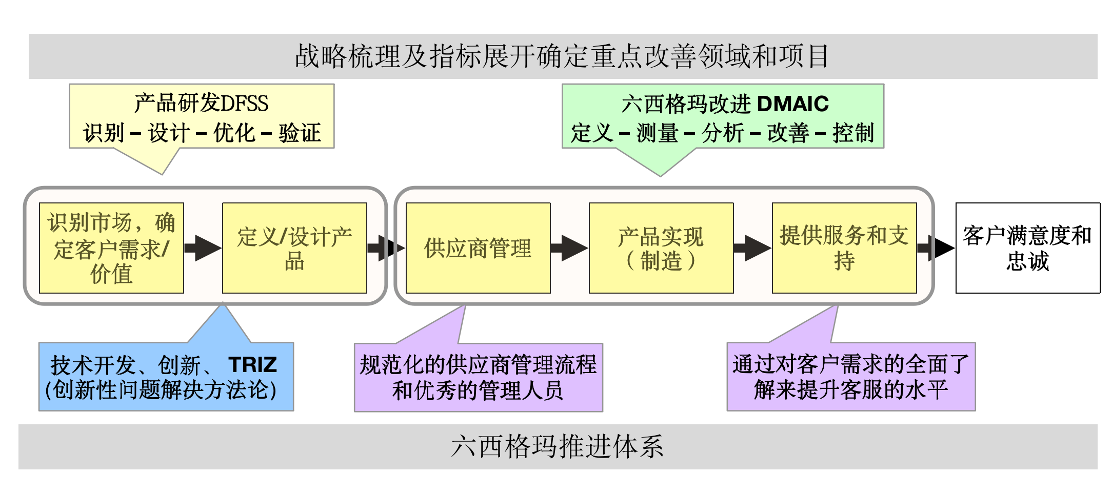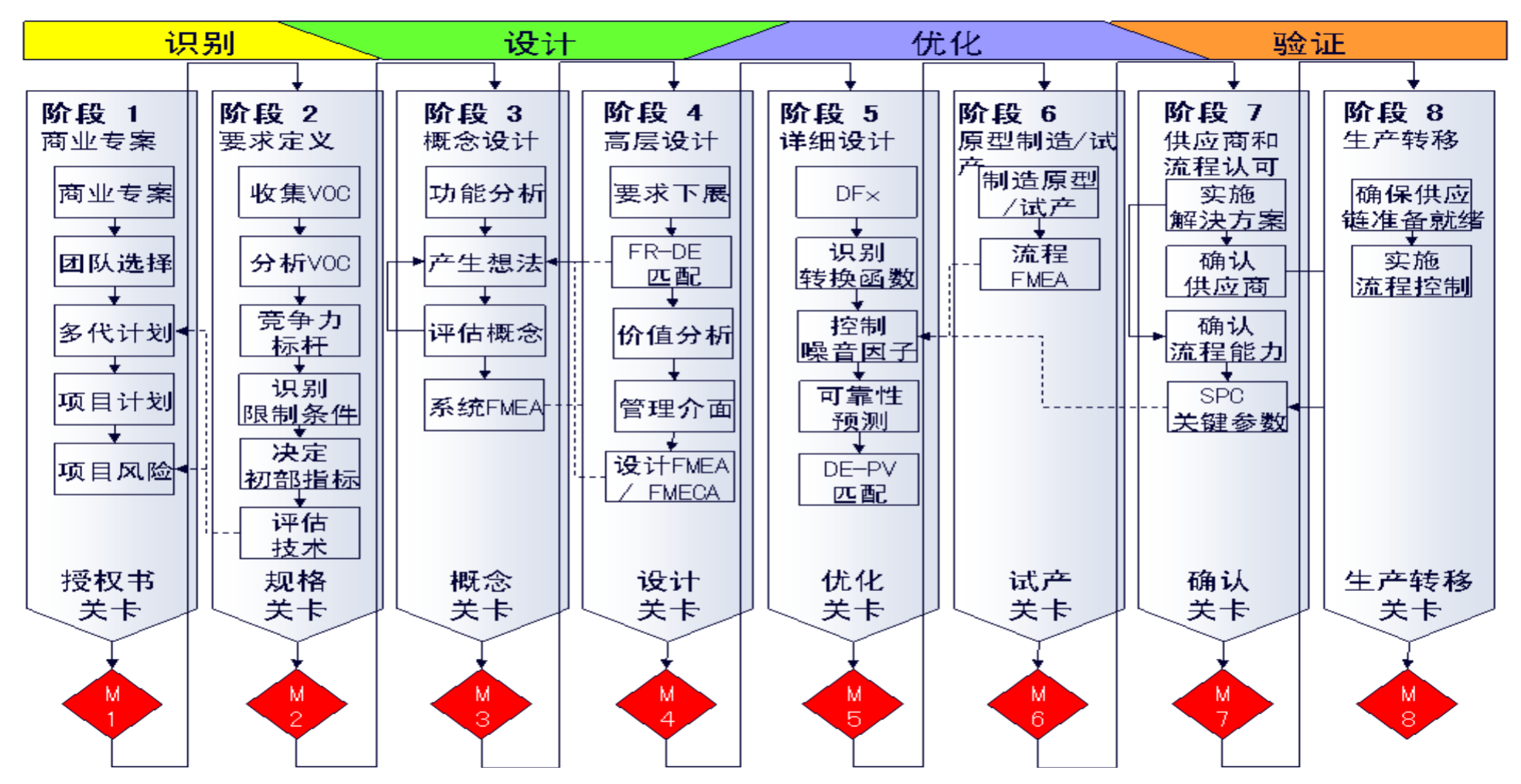 ·六西格瑪設計是一種從被動設計變為主動設計的方法,DFSS從市場和客戶的需求出發,根據總結了前人經驗的方法論體系,運用創新和設計的常用工具,將研發和設計工作變得可衡量、可預測、并可控制。
