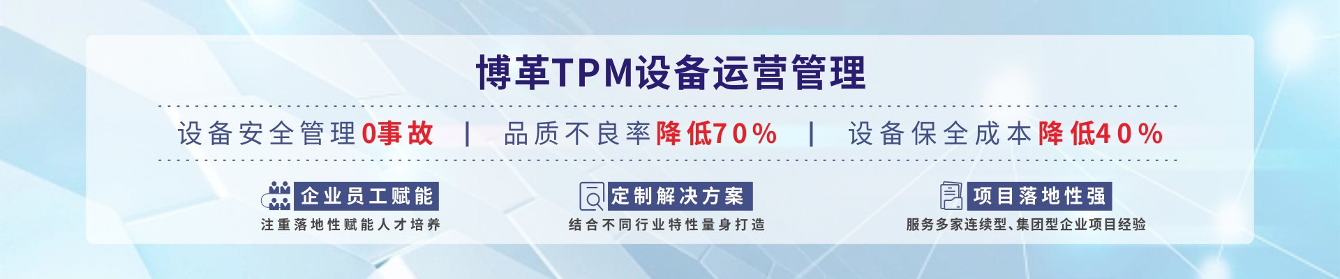 博革咨詢TPM推進采取“自主維護”+“專業維護”雙軌制的模式;PM的咨詢老師具有設備管理專業背景(設備工程師/電氣工程師/二級技師/PLC工程師/中國設備協會會員等),在大型企業設備總監/經理的從業經歷,并具有大型線纜行業經驗,擅長解決設備專業難題;AM的咨詢老師擅長自主維護標準和流程管理,營造全員改善氛圍,提升設備維護技能等